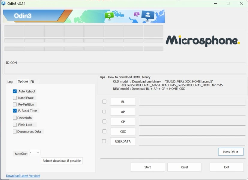 Odin programında aşağıdaki adımları izleyerek firmware dosyasını ekleyin: